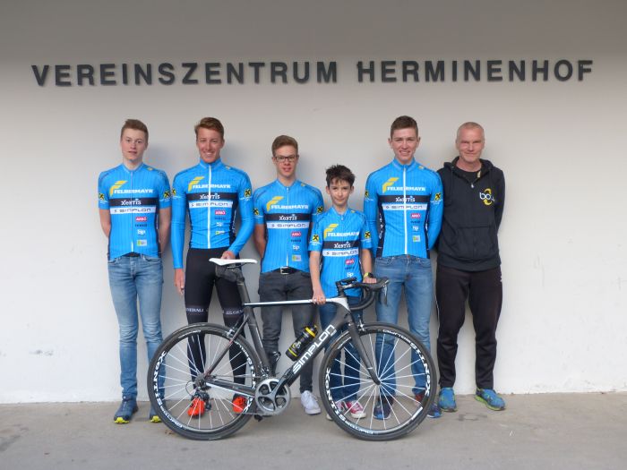 Nachdem die ersten frühen Renneinsätze noch in den Trikots der Saison 2016 erfogten, tragen ab sofort auch unsere Amateure, Master und der Nachwuchs die neuen 2017-Trikots im eleganten "Nadelstreiflook".